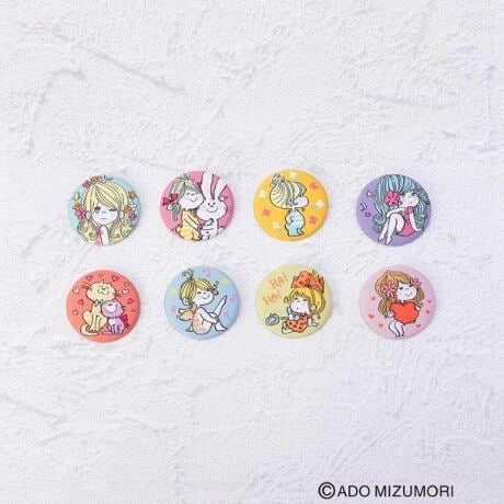 水森亜土イラストの織刺繍缶バッジ♪パステルカラーの刺繍がおしゃれ♪