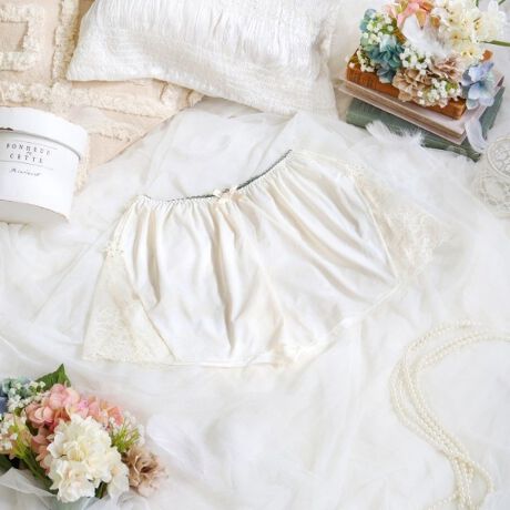 オオデマリのお花をモチーフにした、可憐で華やかなシリーズです。裾には大胆なV字のカッティングでストレッチレースをあしらい、華やかさの中にも抜け感を演出。サイドにはカットホールをあしらい、小花のアップリケを添えて、タップパンツだけの特別感をお楽しみいただけます。キラキラときらめくラメ糸と、リサマリらしいカラーリングをミックスした、女の子の心ときめくコレクションです。