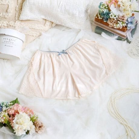オオデマリのお花をモチーフにした、可憐で華やかなシリーズです。裾には大胆なV字のカッティングでストレッチレースをあしらい、華やかさの中にも抜け感を演出。サイドにはカットホールをあしらい、小花のアップリケを添えて、タップパンツだけの特別感をお楽しみいただけます。キラキラときらめくラメ糸と、リサマリらしいカラーリングをミックスした、女の子の心ときめくコレクションです。