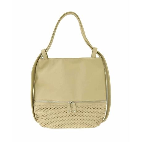 三角形のパンチングを施した洒落感あるディテールと、柔らかで品のあるレザー調生地が大人スタイルに馴染みやすいお作りです。