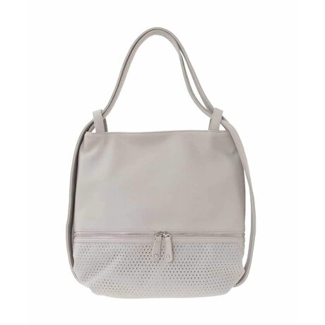 三角形のパンチングを施した洒落感あるディテールと、柔らかで品のあるレザー調生地が大人スタイルに馴染みやすいお作りです。