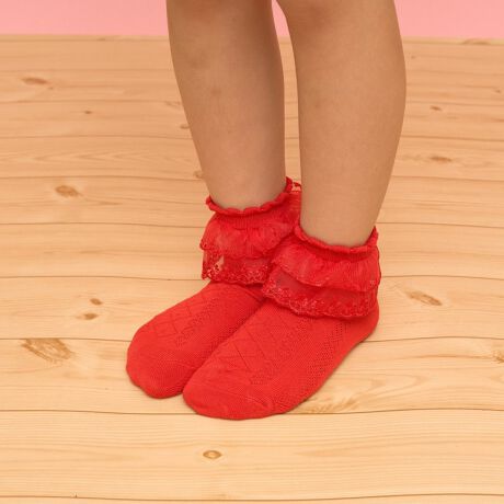 二重仕様のたっぷりフリルレースがアクセントのソックス。