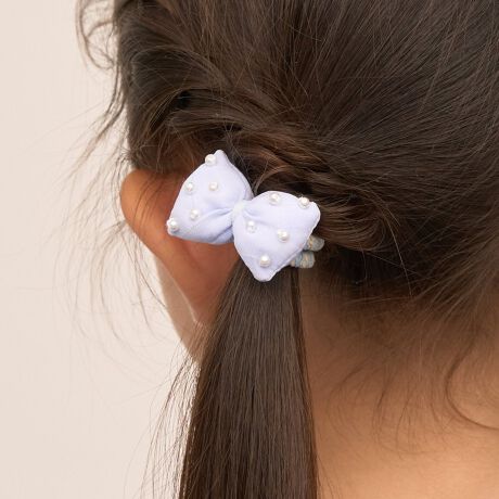 ぷっくりリボンと、パール風の小さなビーズがポイントのヘアゴムセット。