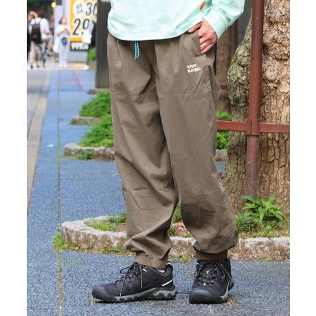 腰周りにゆとりを持たせ、裾を絞ったジョガーシルエット。