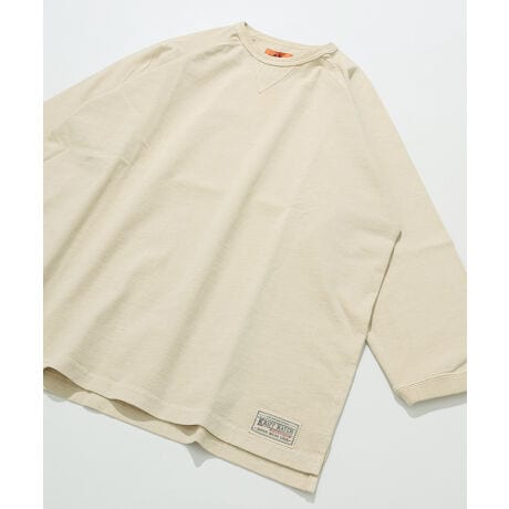 16/-天竺生地に製品ピグメント加工を施した、七分袖のラグランTシャツです。