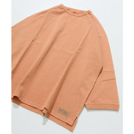 16/-天竺生地に製品ピグメント加工を施した、七分袖のラグランTシャツです。
