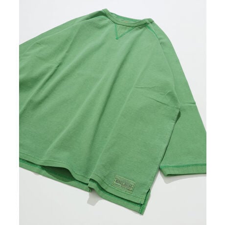16/-天竺生地に製品ピグメント加工を施した、七分袖のラグランTシャツです。