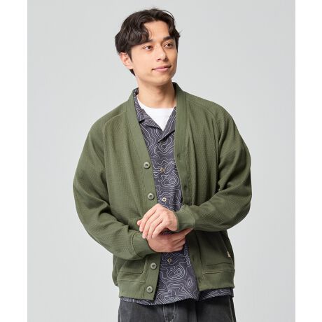 オリジナルのハニカムサーマル素材を使用した長袖Vネックカーディガンです。