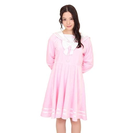優しい色合いが可愛らしい、ピンク×ホワイトのセーラー風ワンピースです。