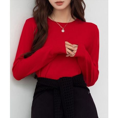 肌触りの良い薄手ニットでインナーとしても一枚着としても活躍。