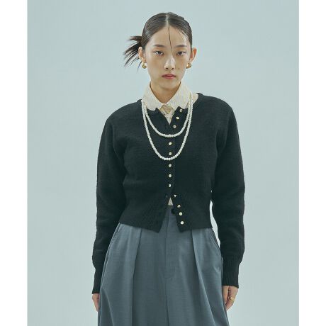 丸襟と小粒ボタンがアクセントのショート丈カーディガン