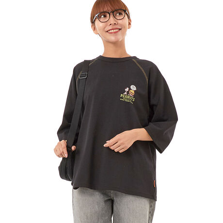 フロントには、ぽてっとしたスヌーピーとチャーリー・ブラウンのプリントが入っており、前も後ろもかわいいアイテムです。