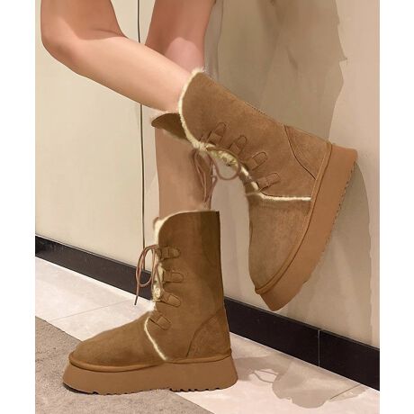 ボアムートンブーツ裏起毛 厚底ブーツ冬靴