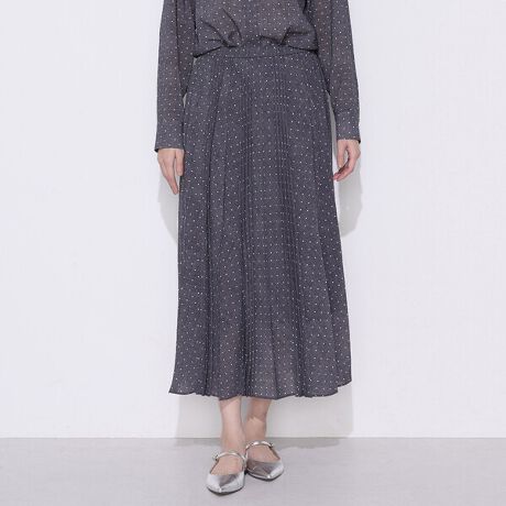 細幅と太幅のアコーディオンプリーツに動きのあるデザインで、コムサらしいモノトーンにドットプリーツスカートが華やかさをプラスしてくれます。