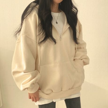 -ハーフジップ×ビッグシルエットで旬コーデにアップデート