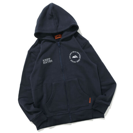 シンプルでカッコいいロゴ刺繍がポイントのフルジップパーカー。