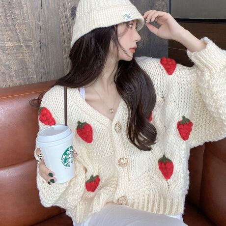 【いちごモチーフニットカーデ】