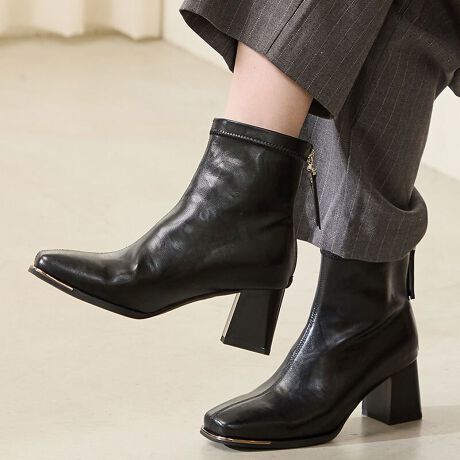 【25秋冬新作】メタリックトゥパーツヒールショートブーツ/51426