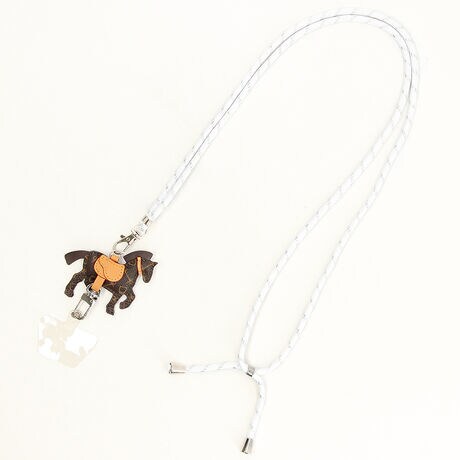 ◆取り付けは、プレートのホルダーをスマホケースの充電用ホールに差し込み、ロープについてるフックパーツを引っかけるだけの簡単装着!