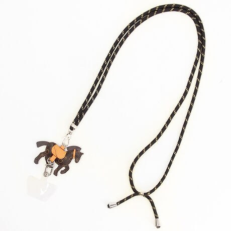 ◆取り付けは、プレートのホルダーをスマホケースの充電用ホールに差し込み、ロープについてるフックパーツを引っかけるだけの簡単装着!