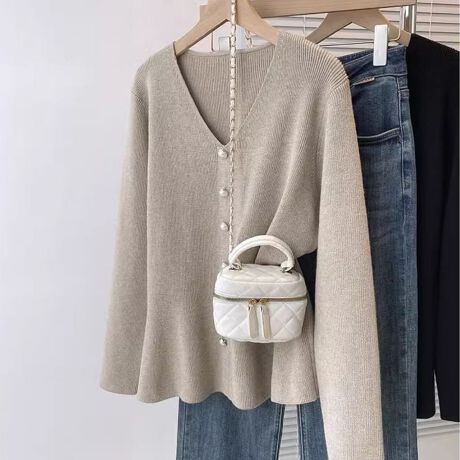 やや薄手なので重ね着しやすく、オフィスカジュアルにもおすすめ。