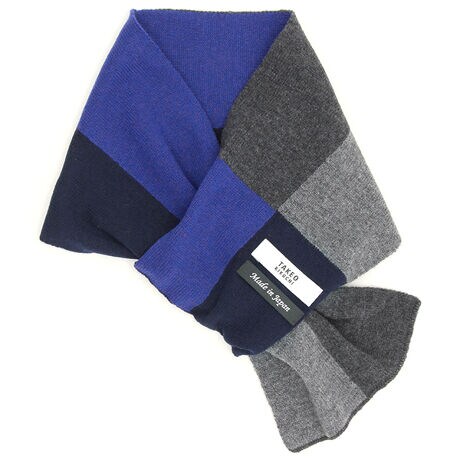 上質な日本製ウール100%を使用した、タケオキクチのミニマフラー。ブロック配色とソリッドカラーを組み合わせたデザインが、首元に程よいアクセントと大人の上品さを添えてくれます。カジュアルからビジネスまで幅広く合わせやすく、コーディネートに自然な変化をつけられる一本です。