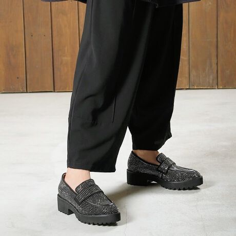 ラインストーン厚底ローファー