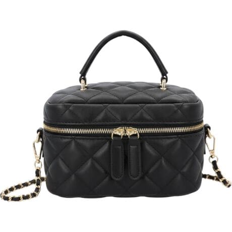 【コーデに可愛いアクセントをプラス】おしゃれに持ち歩けるキルティングデザイン♪「ルーシュ2WAYバニティ」。【コンパクトなバニティバッグ】ちょこんと持てるフォルムがキュート!身軽にお出かけできて、こなれ感もアップ。【色んなコーデに素敵にマッチ】ゴールド金具を組み合わせ、大人な印象に。フェミニンやカジュアルスタイルとも相性抜群。【お好みに合わせてスタイルチェンジ】付属のショルダーベルトで肩掛けや斜め掛けもOK。取り外して手持ちも自在な2WAY☆【見やすくぐるっと180度オープン】左右どちらからも大きく開くファスナー式。取り出しやすく、閉じれば中身が飛び出す心配なし。【マストアイテムがひとまとめ】ミニ財布やリップなどのコスメ、スマホなどをIN。荷物を入れていない状態でも自立◎【サクッと取り出せて迷子知らず】内側にポケットを配置。細々した物も、バッグの中で探す手間が不要。【街にも馴染む大人カラー】落ち着いた色味が魅力のラインナップ。どんなコーデにも合わせやすく、デイリーに活躍!