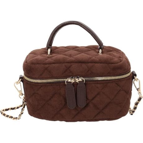 【コーデに可愛いアクセントをプラス】おしゃれに持ち歩けるキルティングデザイン♪「ルーシュ2WAYバニティ」。【コンパクトなバニティバッグ】ちょこんと持てるフォルムがキュート!身軽にお出かけできて、こなれ感もアップ。【色んなコーデに素敵にマッチ】ゴールド金具を組み合わせ、大人な印象に。フェミニンやカジュアルスタイルとも相性抜群。【お好みに合わせてスタイルチェンジ】付属のショルダーベルトで肩掛けや斜め掛けもOK。取り外して手持ちも自在な2WAY☆【見やすくぐるっと180度オープン】左右どちらからも大きく開くファスナー式。取り出しやすく、閉じれば中身が飛び出す心配なし。【マストアイテムがひとまとめ】ミニ財布やリップなどのコスメ、スマホなどをIN。荷物を入れていない状態でも自立◎【サクッと取り出せて迷子知らず】内側にポケットを配置。細々した物も、バッグの中で探す手間が不要。【街にも馴染む大人カラー】落ち着いた色味が魅力のラインナップ。どんなコーデにも合わせやすく、デイリーに活躍!