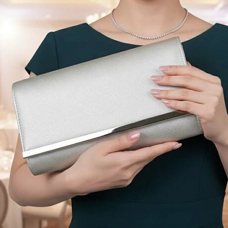 結婚式やパーティー、格式あるお呼ばれの席に華を添える、フェイクレザーのクラッチバッグです。