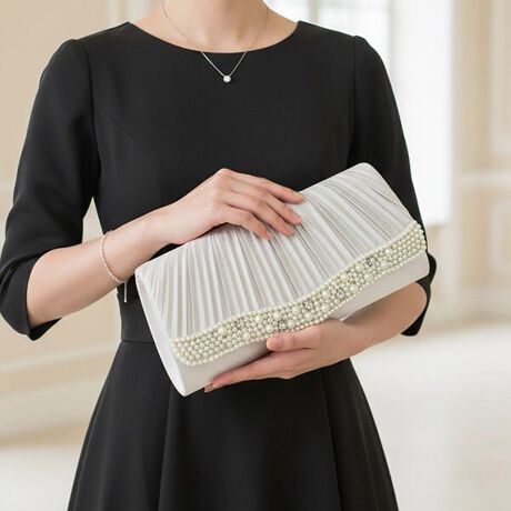 結婚式、披露宴、パーティー、格式あるお呼ばれなど、上品さとモダンな華やかさを求めるシーンに最適なクラッチバッグです。