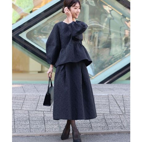 立体的なふくれジャガード生地を使用した上品なセットアップ。