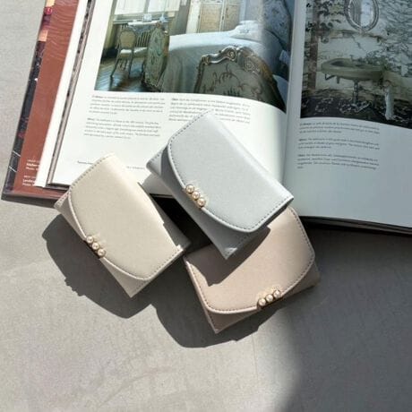 合成皮革の素材にパール調モチーフを掛け合わせた上品感のあるカードケース。