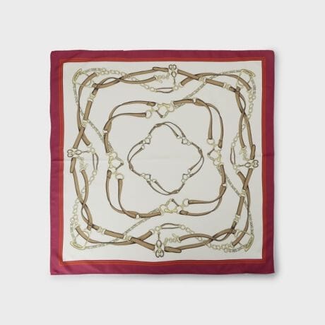 首元はもちろん、手元やバッグに結んだときも柄が美しく映える一枚です。