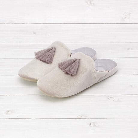 ゆらゆら揺れるタッセルが付いている、エレガントな印象のベロアスリッパ。