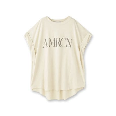 袖部分のさりげないロールアップデザインと大胆なロゴプリントがポイントのアメリカーナのTシャツ。