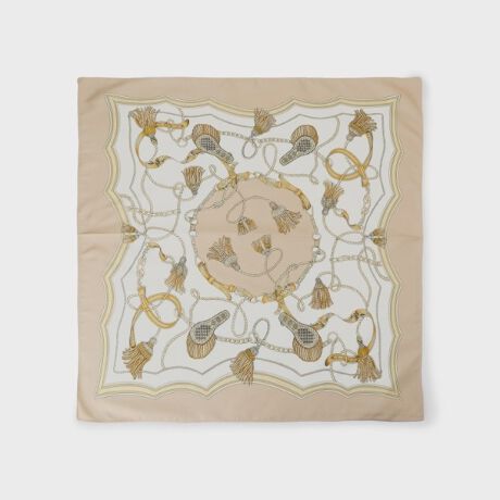 クラシカルなタッセル柄を主役にした、70cm四方のスクエアスカーフです。