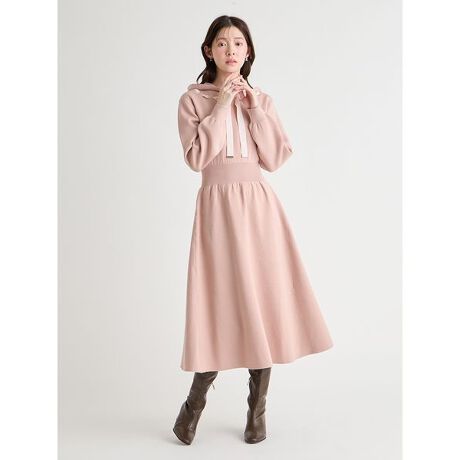 プレーティングによって生まれる程よいハリと、もちっとした弾力を持つ上質な編地で仕立てた、フード付きのフィット&フレアーワンピース。軽やかな着心地ながら、シルエットは美しく構築的で、さりげない存在感を放ちます。カジュアルな印象になりがちなフードデザインも、グログランリボンの艶感やメタルのコードエンド、オリジナルのチャームの繊細なきらめきが、エレガントなアクセントに。衿ぐりのリボン使いや、リンキング部分に施された振りミシンなど、細部にまでこだわった仕様が全体を上品に引き立てます。旅先や週末のお出かけなど、リラックスしたシーンでも“きちんと感”を大切にしたい女性に寄り添う一着。動きやすさと女性らしさを兼ね備えた、CELFORDならではの上品な佇まいが魅力の一枚です。
