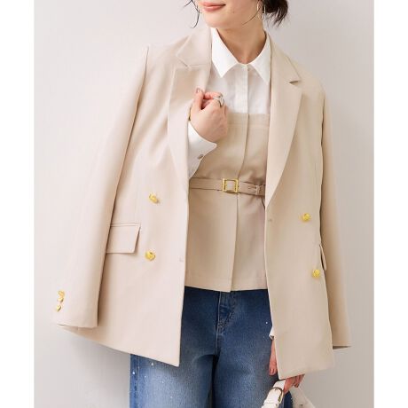 VISで人気の着回し抜群の機能性と美シルエットを兼ね備えたWブレストテーラードジャケットです。きちんと感のある肩幅と着丈のバランス、ゴールド釦が女らしい一着。