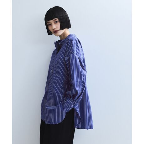 胸ポケットの付いた、オーバーサイズのバンドカラーシャツ。