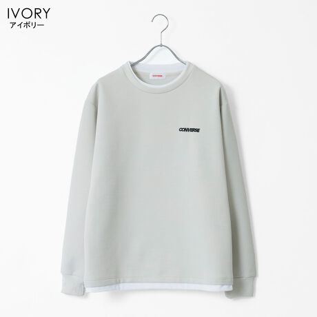 (アイボリー、ブルーグレイ)には左胸にブランドロゴ刺繍があり、背面にはブランドスニーカーのプリントが大胆に入り、後ろ姿でしっかり存在感を出せるメリハリあるデザイン。