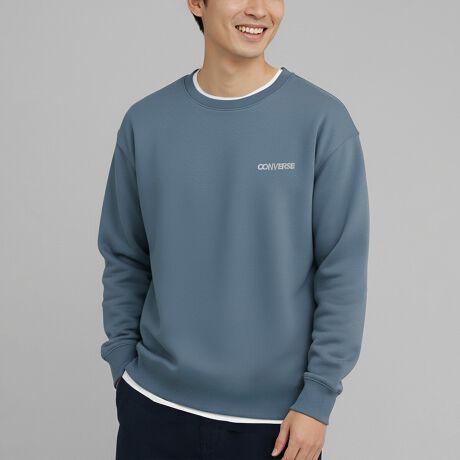 (アイボリー、ブルーグレイ)には左胸にブランドロゴ刺繍があり、背面にはブランドスニーカーのプリントが大胆に入り、後ろ姿でしっかり存在感を出せるメリハリあるデザイン。