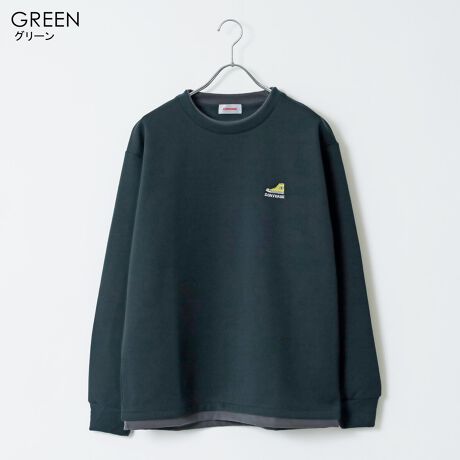 (オートミール、グリーン)左胸にブランドスニーカー刺繍が控えめなアクセントになり、大人っぽく上品な印象をプラス。