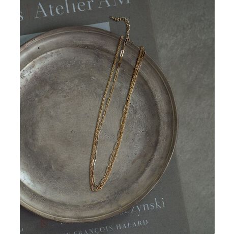 細めのチェーンとひねりを加えたチェーンが連なった、大人のスタイルにほどよい存在感を添えるネックレス。