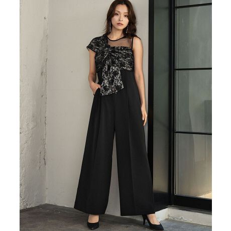 特別な日におすすめの華やかさと上品さを兼ね備えたパンツドレスです。