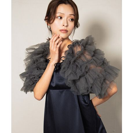 大小のフリルを贅沢に重ねたチュールが存在感を放つボレロ。