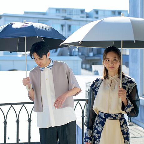 ・遮光率100%、紫外線遮蔽率100%、UPF50+、遮熱効果の晴雨兼用タイプ