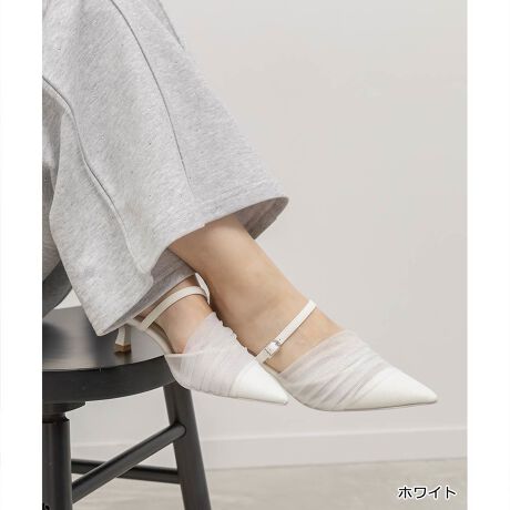 繊細なラメがきらめくシアー素材のミュールパンプス。