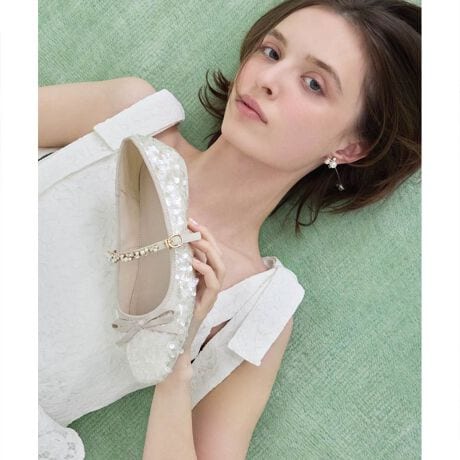 きらめくスパンコールが印象的なビジューストラップバレエシューズ。