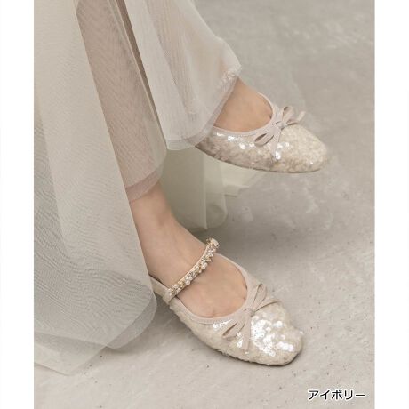 きらめくスパンコールが印象的なビジューストラップバレエシューズ。